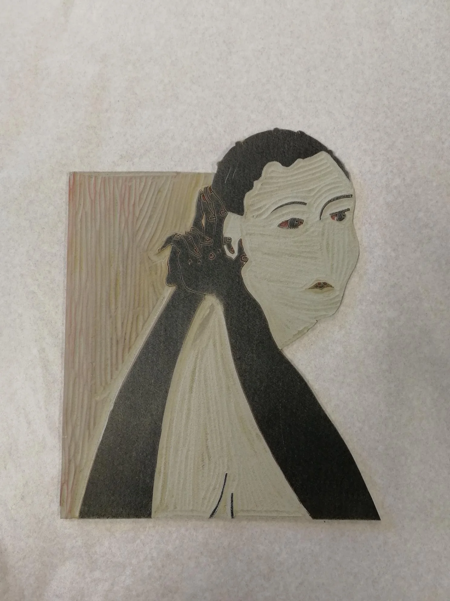 Reduction linocut block detail at Timberhousepress.